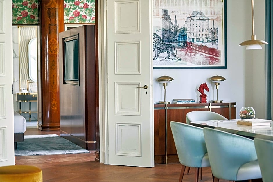 Relax in style in our spacious, unique Wintergarden Connecting Suite. A perfect option for family travelers looking for two king beds, our Wintergarden suite with connecting Premium king bedroom provides just that. A whole family can enjoy the private sun-filled winter garden with a dining table for four and an airy and spacious open-plan living area overlooking the Haymarket square. The private bathroom features a large bathtub, shower, and luxury Byredo toiletries. The suite amenities include a complimentary mini-bar with select local snacks and beverages, and a flat-screen TV with a casting option.